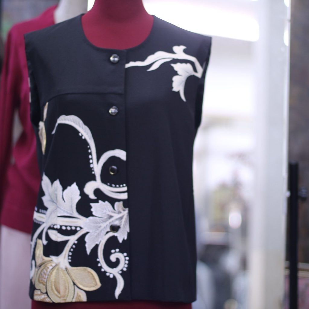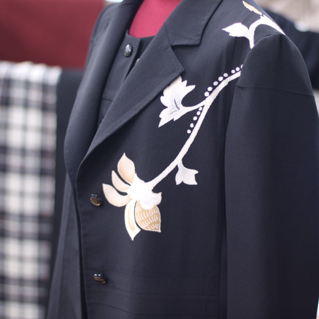 留袖を利用してテーラードジャケットとベストのアンサンブルを作成しました。